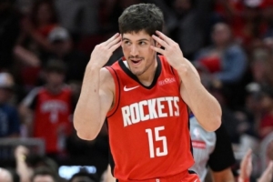 在本賽季的大部分時間里,火箭隊并沒有讓謝潑德像范弗里特那樣去扛起后場核心的重擔,而是讓申京和杜蘭特這兩個非后場核心去主導進攻,運球過半場也經(jīng)常讓阿門代勞。謝潑德僅以一個定點射手的角色去參與其中。