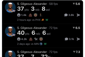 賽后美媒Real Sports曬出了亞歷山大近三戰(zhàn)數(shù)據(jù),寫(xiě)道:“SGA應(yīng)進(jìn)入歷史級(jí)別得手的討論。”
