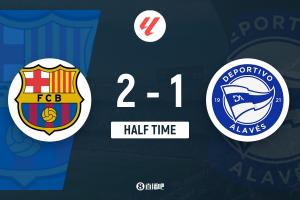 上半場補時4分鐘,巴薩2-1阿拉維斯。