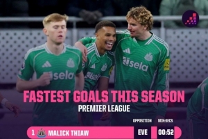 本賽季英超最快進球榜: