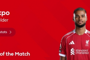 本場(chǎng)比賽加克波表現(xiàn)不俗,傳射建功,賽后他也當(dāng)選英超官方球迷票選全場(chǎng)最佳球員。