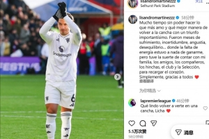 “這幾個月充滿了痛苦、不確定、焦慮和失衡……能量的缺乏幾乎讓我敗下陣來,但我幸運地擁有家人、朋友、隊友、球迷、俱樂部和國家隊的支持,讓我能夠重新充滿力量。簡單地說,感謝所有人?!?/p>