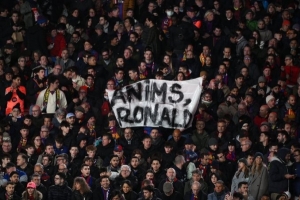 本場比賽,在諾坎普球場內(nèi)出現(xiàn)了一條球迷專門為羅納德·阿勞霍展示的橫幅。該橫幅上寫著“請振作起來,羅納德”。