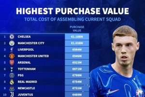 體育資訊9月20日訊 德國轉會市場列出了現(xiàn)有陣容花費最多球隊榜單,切爾西11.8億歐居首,曼城、利物浦二三位。