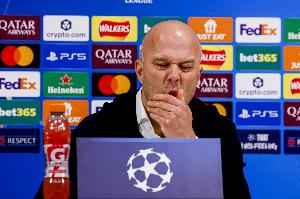 斯洛特說:“是的,我覺得在比賽的最后幾分鐘,我們非常接近打進(jìn)第二球,因?yàn)槲覀冇袔状味ㄎ磺驒C(jī)會(huì),而且持續(xù)壓在對(duì)方禁區(qū)附近。他們完全無法從這種局面中脫身。但就在其中一次定位球的第二落點(diǎn)中,我們將球吊入禁區(qū),對(duì)方門將將球抱住。我抬頭時(shí)看到他們有一名球員在中線附近完全無人盯防。好在基耶薩沒有認(rèn)為“啊,這球離我太遠(yuǎn),我做不了什么了”,而是繼續(xù)全速?zèng)_刺,阿利松也將對(duì)方球員逼向外側(cè),于是基耶薩得以在門線上完成解圍。我認(rèn)為這是我們今晚至少應(yīng)得的結(jié)果,也是他努力至少應(yīng)得的回報(bào)。我的意思是,至少取得平局,是我們今晚應(yīng)得的最低結(jié)果。”