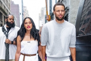 本場比賽,庫里和妻子阿耶莎以及老庫里現(xiàn)場觀戰(zhàn),庫里還被驚出表情包。