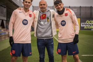 體育資訊12月5日訊 本周四,巴薩在俱樂部訓(xùn)練基地備戰(zhàn)對陣貝蒂斯的西甲比賽,俱樂部傳奇伊涅斯塔造訪并和多名球員進(jìn)行了親切交流,這其中包括了佩德里、費(fèi)爾明以及萊萬等人。