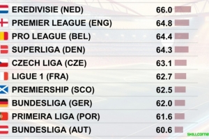 體育資訊9月20日訊 CIES盤點各聯(lián)賽球員平均高強(qiáng)度跑動數(shù)據(jù),荷甲第一。