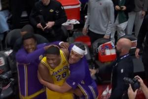 下一篇: 八村塁絕殺后 詹姆斯在場(chǎng)上和湖人隊(duì)員們挨個(gè)撞胸慶祝??