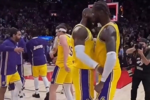 GIF-八村塁絕殺后詹姆斯和湖人隊(duì)員們瘋狂撞胸慶祝
