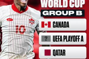 世界杯B組為:加拿大、歐洲區(qū)附加賽球隊A、卡塔爾、瑞士