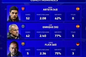 體育資訊12月6日訊 德國轉會市場列出了2025年最佳教練候選名單,阿爾特塔、恩里克、弗里克、孔帕尼在列。