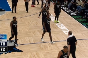 第三節(jié),森林狼展開(kāi)反擊,不斷蠶食分差,麥克丹尼爾斯單節(jié)獨(dú)得12分,幫助球隊(duì)在第三節(jié)以30-22凈勝快船8分。