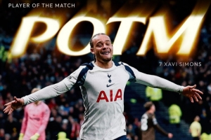 據(jù)賽后熱刺官方消息,哈維·西蒙斯被評為此役隊內(nèi)最佳球員。