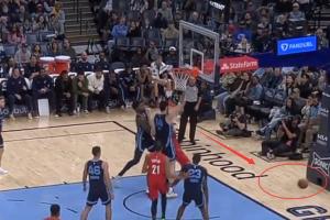 斯普利特直接進場示意想要挑戰(zhàn),但灰熊突然發(fā)球直接到前場了