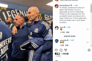 里貝里與齊達內(nèi)出席了在馬賽舉辦的“宇宙聯(lián)賽”活動,里貝里社媒曬出與齊達內(nèi)的合照,配文:“再次見到你總是很高興,老大哥齊達內(nèi),尤其是在馬賽的主場。感謝組織方帶來這場精彩的活動,更要衷心感謝那些總是大批到場支持我們的球迷們。”