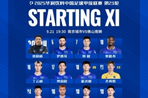 2025華潤飲料中甲聯(lián)賽第23輪,南京城市VS佛山南獅首發(fā)名單出爐,讓我們并肩戰(zhàn)斗!