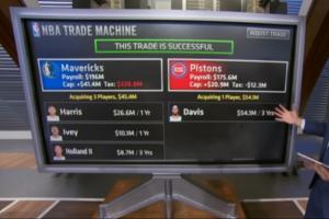 ESPN薪資專家Bobby Marks據(jù)此報道進行模擬交易,濃眉奔赴活塞,獨行俠得到托拜亞斯·哈里斯+艾維+霍蘭三將。