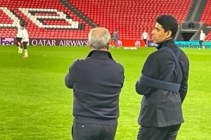 體育資訊12月10日訊 《馬卡報(bào)》報(bào)道,巴黎圣日耳曼主席納賽爾手打石膏,看球隊(duì)訓(xùn)練。