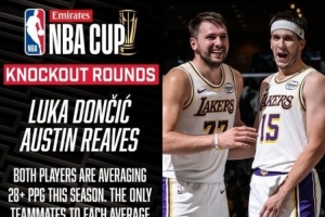 歷史上單賽季場均同時達(dá)到28+分的隊友組合僅有:2000-01賽季的奧尼爾(28.7分)與科比(28.5分),以及1961-62賽季的埃爾金·貝勒(38.3分)與杰里·韋斯特(30.8分)。