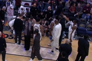 末節(jié)3分53秒,暫停時刻,全場10投1中的庫明加被換下,有些鬧脾氣