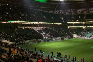 據(jù)“天天體育”報(bào)道,賽前工體北看臺(tái)國安球迷用手電筒組成了足協(xié)杯冠軍獎(jiǎng)杯的形狀,慶祝球隊(duì)足協(xié)杯奪冠。