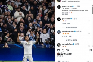 本場比賽羅德里戈率先破門,打破個人連續(xù)32場進球荒,他在社媒曬出本場照片,配文寫道:“還要繼續(xù)努力,我們會改變現(xiàn)狀,Hala Madrid! ????”