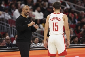 這個球能打到最后,我覺著當(dāng)然快船也拼了,但是跟火箭對這場比賽沒有什么針對性也有很大關(guān)系,是吧?你明顯這球不上謝潑德火箭早贏了,第三節(jié)那時段上霍勒迪好很多,好像就是說領(lǐng)先一點(diǎn)之后他就老得把謝潑德?lián)Q上去,然后讓謝潑德練一練,是吧?他就是常規(guī)賽,常規(guī)賽其實(shí)沒有那么強(qiáng)的 match up 的對位的針對性。烏