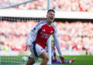體育資訊9月22日訊 英超第5輪比賽,阿森納在酋長球場迎戰(zhàn)曼城。本場比賽,馬丁內利替補登場在補時階段為槍手扳平比分。