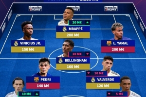 前鋒:維尼修斯(1.5億歐)、姆巴佩(2億歐)、亞馬爾(2億歐)