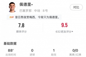 體育資訊12月14日訊 西甲第16輪,巴薩主場(chǎng)2-0擊敗奧薩蘇納,佩德里代表巴薩首發(fā)出戰(zhàn)88分鐘,球員本場(chǎng)數(shù)據(jù)如下:
