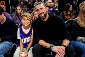 本場比賽,太陽主場迎來了一位重量嘉賓——23枚奧運金牌得主邁克爾·菲爾普斯。