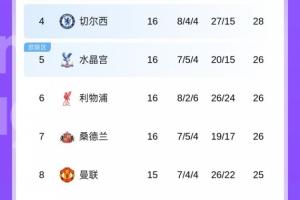 英超15輪過后,曼聯(lián)7勝4平4負積25分排在第8位。本場如果能贏球,曼聯(lián)將升至英超第5。