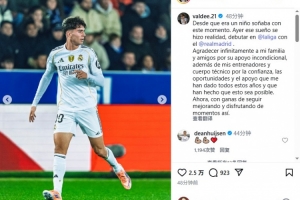 巴爾德佩尼亞寫道:“自童年起我就夢想著這一刻,昨日這個(gè)夢想成真了,在皇家馬德里完成西甲聯(lián)賽首秀。”