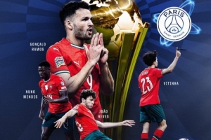 葡萄牙國家隊(duì)官方發(fā)布海報(bào),祝賀效力巴黎的葡萄牙籍球員若奧·內(nèi)維斯、維蒂尼亞、努諾·門德斯和貢薩洛·拉莫斯隨隊(duì)奪冠,這也是他們隨巴黎和葡萄牙國家隊(duì)今年奪得的第7個(gè)冠軍,包括:法甲冠軍、法國杯冠軍、法國超級杯冠軍、歐冠冠軍、歐超杯冠軍、洲際杯冠軍以及歐國聯(lián)冠軍。
