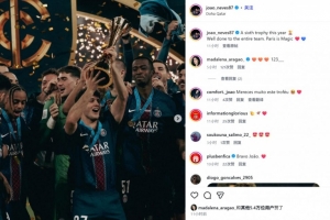 他也在賽后通過社媒曬出自己的捧杯照,并配文:“今年的第六座獎杯??全隊做得非常棒!巴黎充滿魔力????”