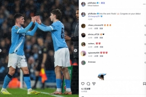 他也在賽后通過社媒曬出自己被查理·格雷換下時(shí)的兩人擊掌致意合照,并配文:“晉級(jí)半決賽,祝賀你上演首秀!”