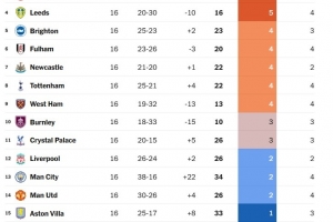 TA盤點(diǎn)了英超烏龍球另類積分榜,回顧了上賽季以來各隊(duì)產(chǎn)生的烏龍球情況(包括對手打進(jìn)的烏龍球)。因此,桑德蘭、伯恩利和利茲聯(lián)的數(shù)據(jù)來自上賽季的英冠聯(lián)賽。