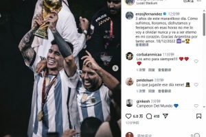 體育資訊12月19日訊 恩佐在Instagram發(fā)文,紀(jì)念阿根廷世界杯奪冠三周年。