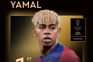 自2018年設立以來,科帕獎已頒發(fā)七屆,姆巴佩、德里赫特、佩德里、加維、貝林厄姆各獲得一次,亞馬爾獲兩次。