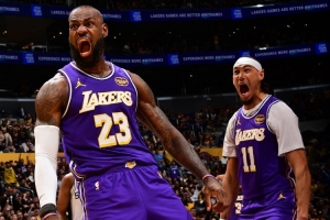 GIF-詹姆斯再來空接,海斯雙手暴扣