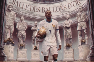 法國隊社媒曬出海報,登貝萊躋身科帕、普拉蒂尼、帕潘、齊達內、本澤馬的行列,成為第6位贏得金球獎的法國球員。