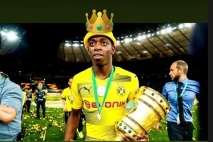 羅伊斯更新社媒動態(tài),曬出登貝萊頭戴王冠的PS照片,祝賀前多特隊友獲獎。