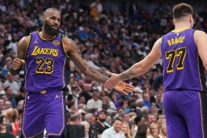 詹姆斯出戰(zhàn)的比賽,東契奇場均36.2分8.3板9.6助攻,真實命中率61%,勝率77.8%(7勝2負);