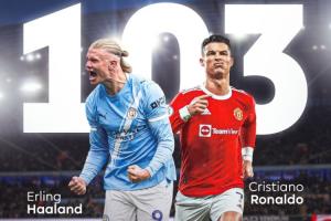哈蘭德在英超聯(lián)賽中用114場比賽就打入了104球,在英超進球數(shù)上正式超越了C羅的103球(236場)!
