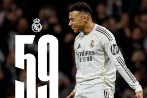 皇馬官方更新社媒動(dòng)態(tài),曬出海報(bào)祝賀姆巴佩,配文:“姆巴佩追平了C羅自然年打進(jìn)59球的紀(jì)錄!”