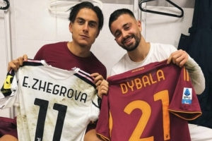 賽后迪巴拉還和尤文球員熱格羅瓦交換了球衣,兩人在更衣室內合影留念。