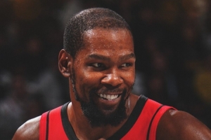 賽后火箭官方曬出本場(chǎng)贏球海報(bào),封面人物是杜蘭特。