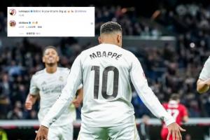 姆巴佩寫道:“相信你的夢想。致敬王者????”,C羅則回復了“????”兩個表情,這則回復在5分鐘內得到了超過5000次點贊。
