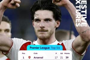 體育資訊12月21日訊 25/26賽季的英超圣誕冠軍為阿森納,他們是英超時(shí)代第34個(gè)圣誕冠軍。